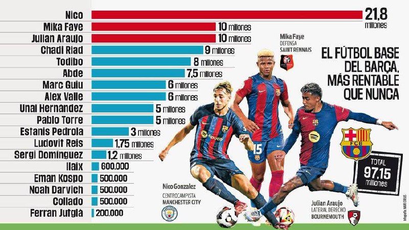 Բարսելոնան շարունակում է արդյունավետ կերպով օգտագործել իր լեգենդար ակադեմիայի՝ Լա Մասիայի հնարավորությունները՝ ոչ միայն առաջին թիմի համար նոր տաղանդներ դաստիարակելով, այլև կարևոր ֆինանսական եկամուտ ապահովելով երիտասարդ խաղացողների վաճառքի միջոցով։